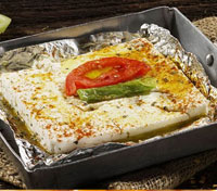 τυρί γκούντα, πατάτες, ντομάτα, κρεμμύδι, τζατζίκι