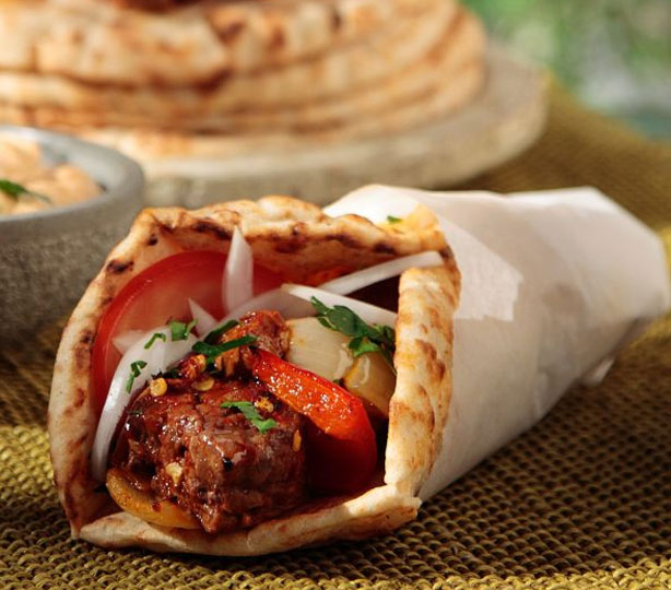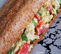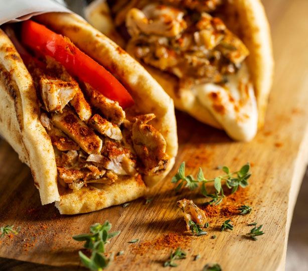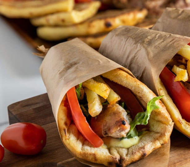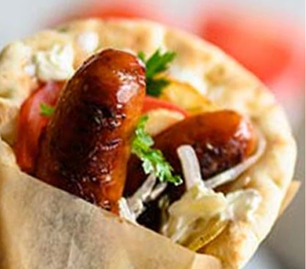σε ψωμί φοκάτσια,λάχανο, καρότο, μαρούλι, ντομάτα,κρεμμύδι, σως γιαουρτιού ή μουστάρδας