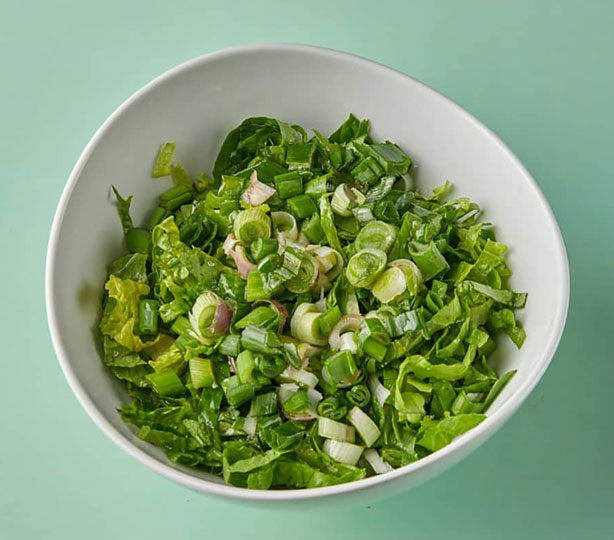 μαρούλι, αγγούρι, ντομάτα, κρεμμύδι & σάλτσα γιαουρτιού. Συνοδεύεται από μισό ψωμί φοκάτσια