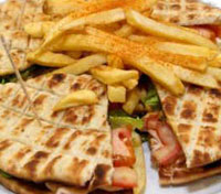 πατάτες,πίτα, ντομάτα, κρεμμύδι, σως επιλογής