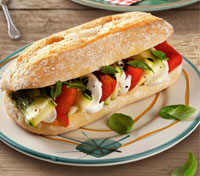 φρέσκια μοτσαρέλα, ντομάτα, αγγούρι, μαρούλι, πέστο Τζενοβέζε